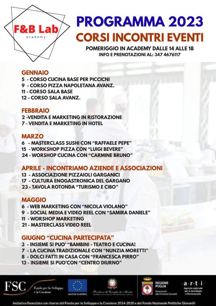 Con un’ aula laboratorio dedicata ad attività di formazione ed eventi nel settore ospitalità come corsi di cucina, sala, gestione e management delle attività diventa punto di riferimento del mondo ristorativo-alberghiero.