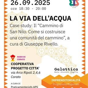 Un bel momento di crescita e confronto l’appuntamento con “Giovani in cammino – La Via dell’Acqua”, tenutosi lo scorso 26 settembre presso il nodo Galattica di Corato, promosso nell’ambito del programma regionale di supporto ai nodi Galattica.